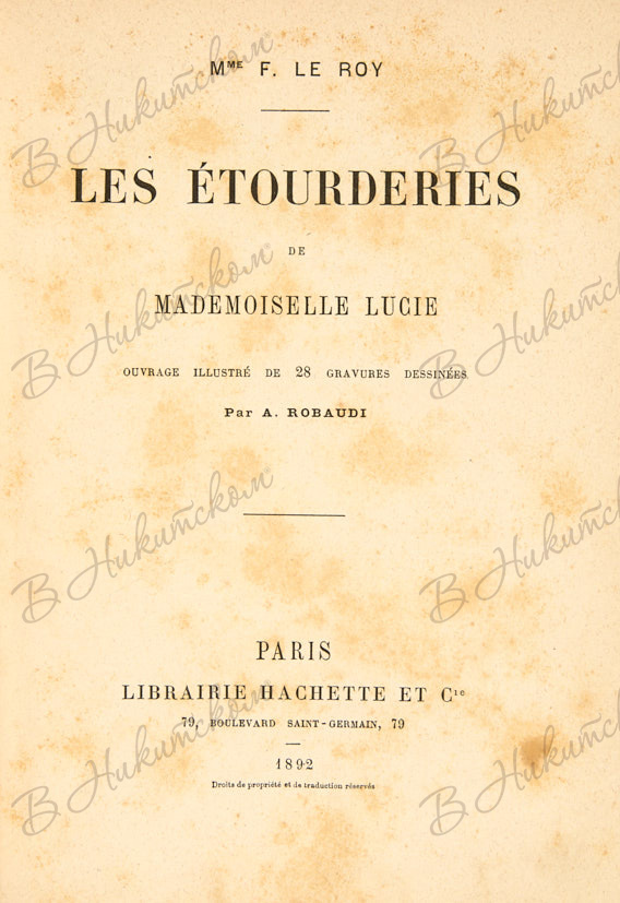 2. Ле Рой, Ф. Абсурдности мисс Люси. [Le Roy, F. Les Etourderies de Mademoiselle Lucie. На французском языке]. Париж: Librairie Hachette et Cie, 1892. [4], 244, [2] с.