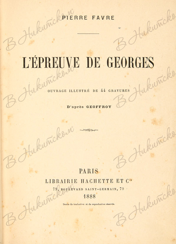 1. Фавр, П. Испытания Жоржа. [Favre, P. L'epreuve de Georges. На французском языке]. Париж: Librairie Hachette et Cie, 1888. [8], 355 c., ил.