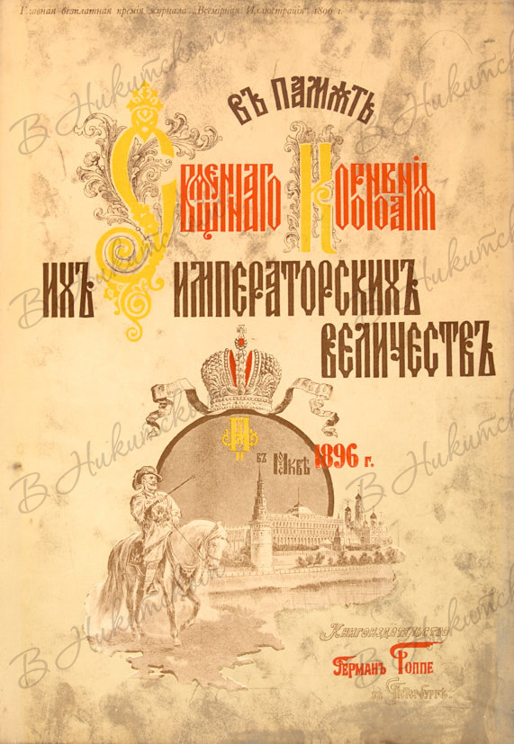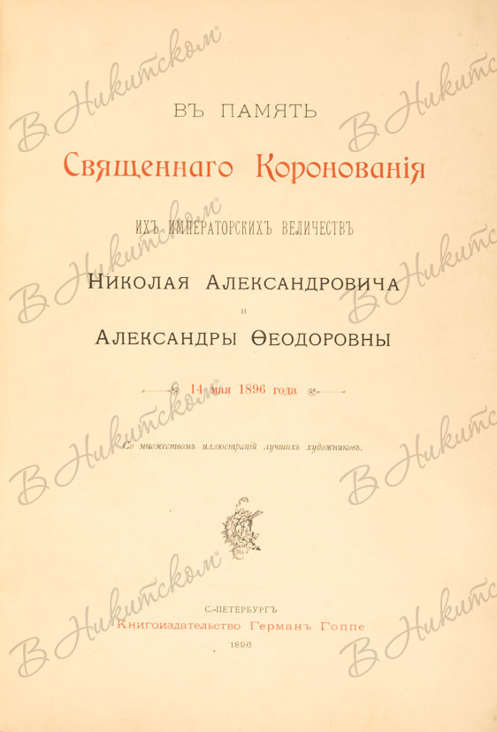В память священного коронования их императорских величеств Николая Александровича и Александры Федоровны 14 мая 1896 года. Со множеством иллюстраций лучших художников. СПб.: Г. Гоппе, 1896.