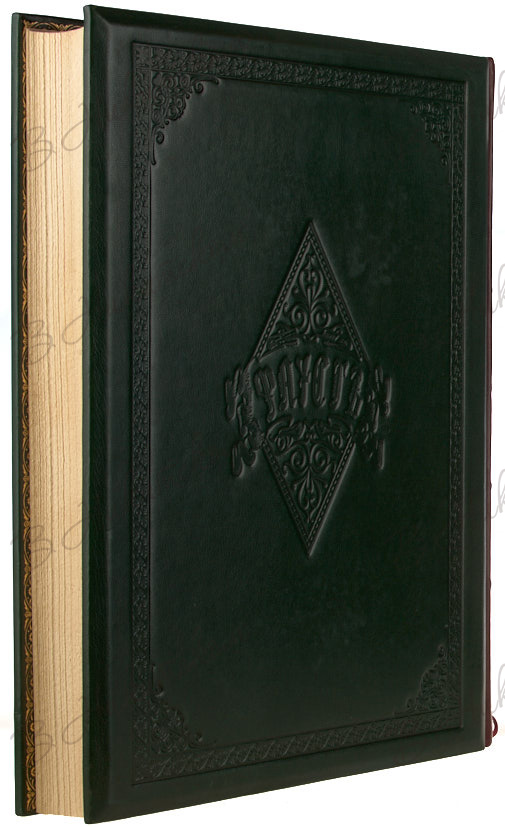43 х 33 см. В цельнокожаном владельческом переплете. Муаровые форзацы. Тройной торшонированный обрез. Ляссе. Реставрация уголка с.35-36 (бумага), утрата части калек, редкие «лисьи» пятна, помета на титуле и заглавном листе.