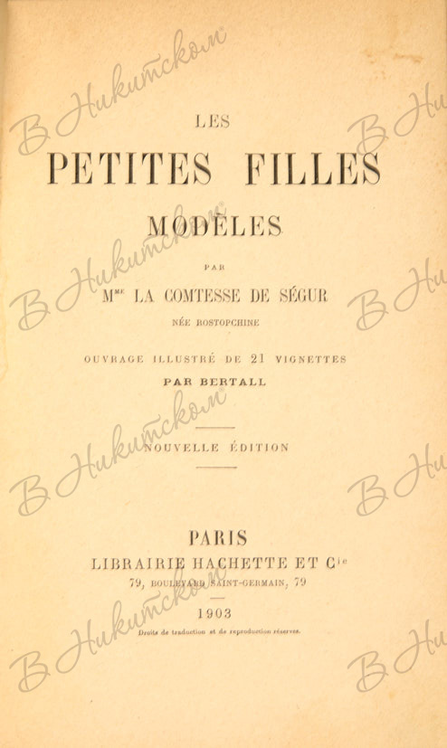 1.Графиня Сегюр. Маленькие модельки. [La comtesse de Segur. Les petites filles modeles. На французском языке]. Париж: Librairie Hachette et Cie, 1903. [4], 316, 16 с., ил.