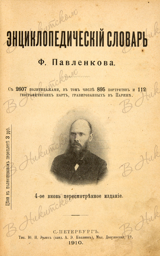 Однотомный иллюстрированный энциклопедический словарь, выпущенный Ф. Ф. Павленковым, пользовался колоссальной популярностью в России. В качестве образца был использован французский энциклопедический словарь П. Ларусса. Для своего времени он был значительным явлением, поскольку содержал краткую и достоверную информацию практически обо всех сферах жизни, науки, искусства.
