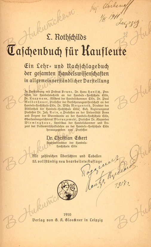 [Ротшильд, Л. Карманный справочник для торговцев]. Rothschilds, L. Taschenbuch für Kaufleute. Leipzig: G.A. Gloeckner, 1910.