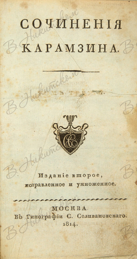 Карамзин, Н.М. Сочинения Карамзина. 2-е изд., исправленное и умноженное. [В 9 т.] Т. 3. М.: Тип. С. Селивановского, 1814.