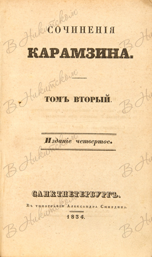 Карамзин, Н.М. Сочинения. Издание 4-е. [В 9 т.]. Т. 2. СПб.: В типографии Александра Смирдина, 1834.