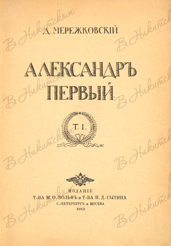 Мережковский, Д. Александр Первый. СПб.; М.: Издание Т-ва И.Д. Сытина, 1913. [В 2 т.]. Т. 1-2.