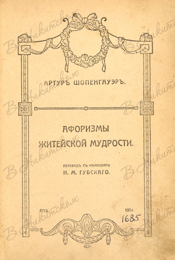 Шопенгауэр, А. Афоризмы житейской мудрости / пер. с нем. Н.М. Губского. СПб.: Тип. Акц. О-ва Тип. Дела (Герольд), 1914.