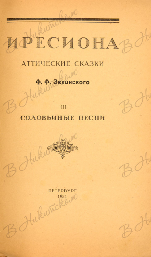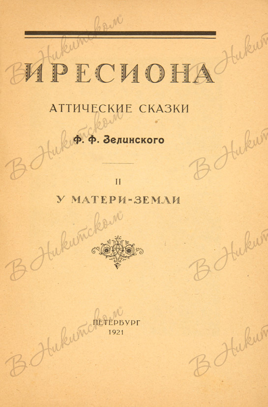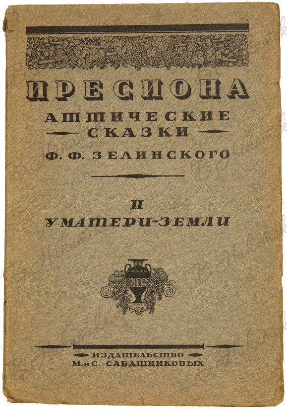 Зелинский, Ф.Ф. Иресиона. Аттические сказки. Кн. 2, 3. Пг.: Издательство М. и Е. Сабашниковых, 1921.