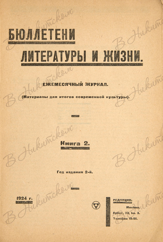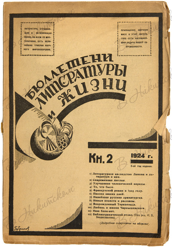 [Обложка худ. Б. Ефимова]. Бюллетени литературы и жизни. Кн. 2 за 1924 г. М., 1924.