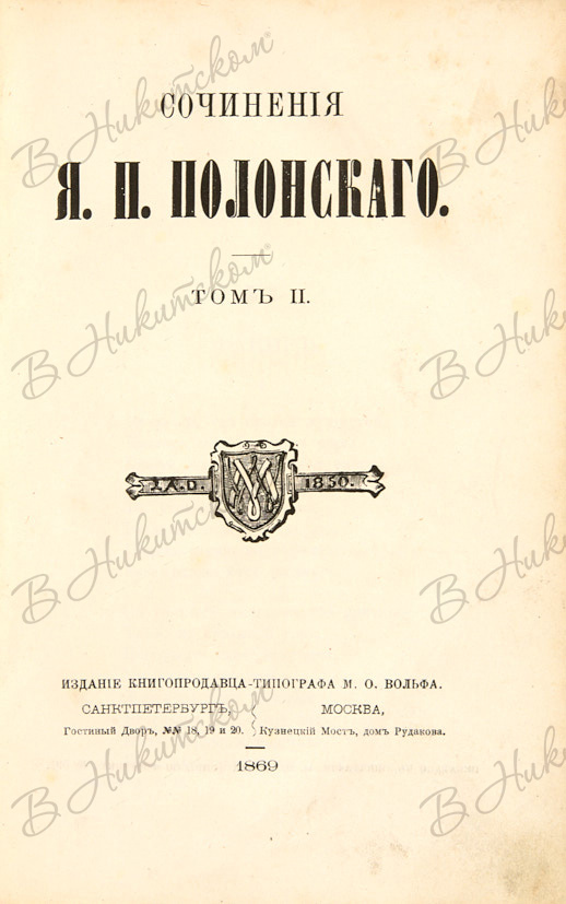 Сочинения Я.П. Полонского. Т. 2. СПб.; М.: Издание М.О. Вольфа, 1869.