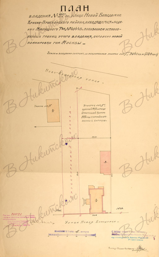 План владения № 27 по улице Новой Божедомке Красно-Пресненского района г. Москвы. [М., 1928].