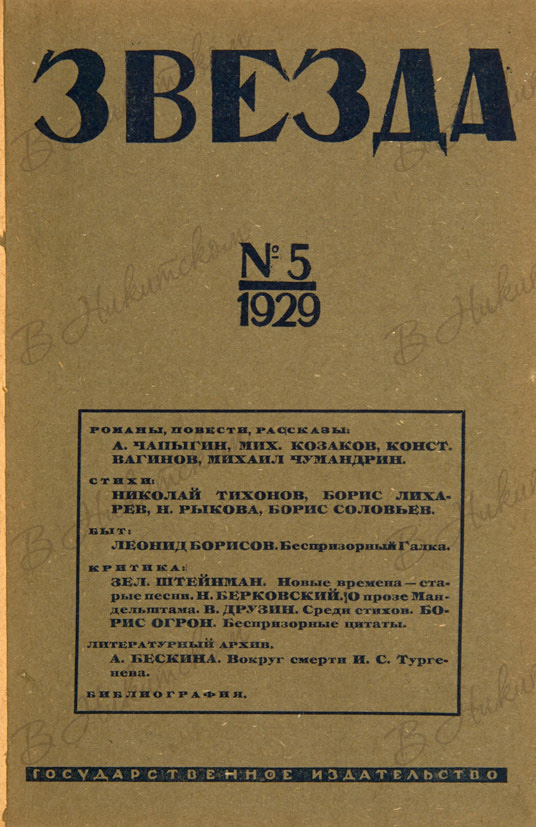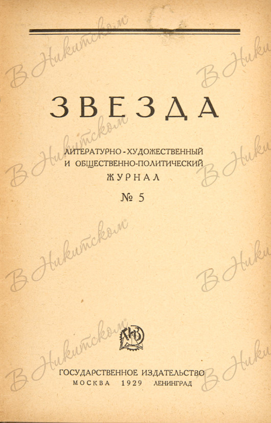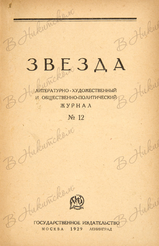Звезда. Литературно-художественный и общественно-политический журнал. №№: 5, 12 за 1929 г. М.; Л.: Государственное издательство, 1929.