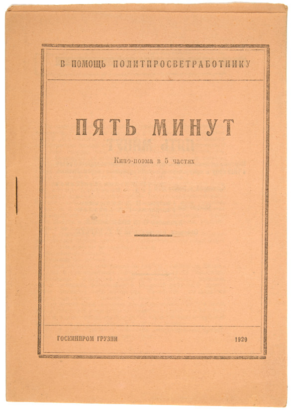 [Пять минут, которые потрясли мир]. Пять минут. Кино-поэма в 5 частях. М.: Госкинопром Грузии [и Теа-кино-печать], 1929.