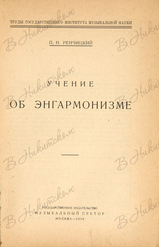 Ренчицкий, П. Учение об энгармонизме. М.: Музыкальный сектор, 1930.