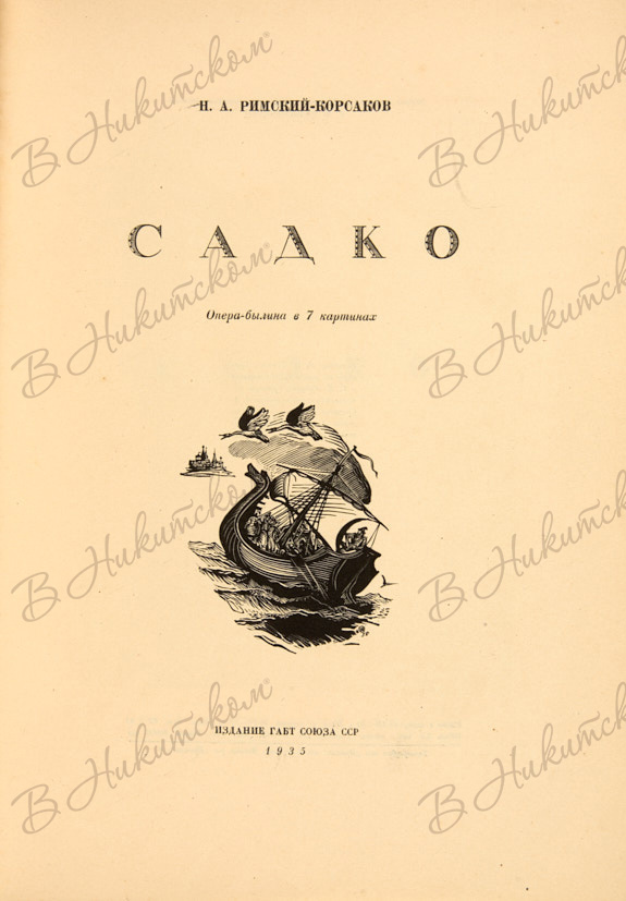Римский-Корсков, Н.А. Садко. Опера-былина в 7 картинах. М.: Издание ГАБТ Союза ССР, 1935.