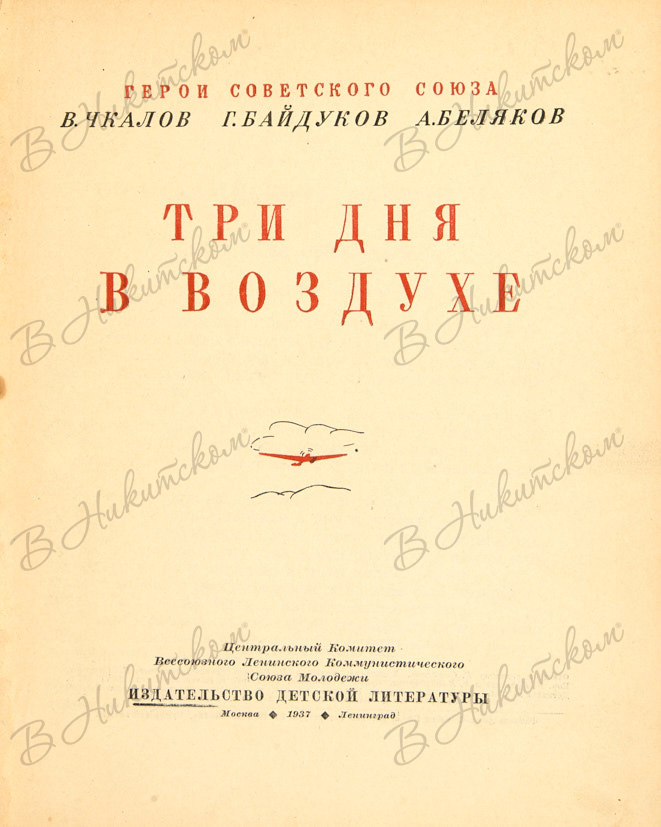 Чкалов, В. Байдуков, Г. Беляков, А. Три дня в воздухе. М.; Л.: ДЕТИЗДАТ, 1937.