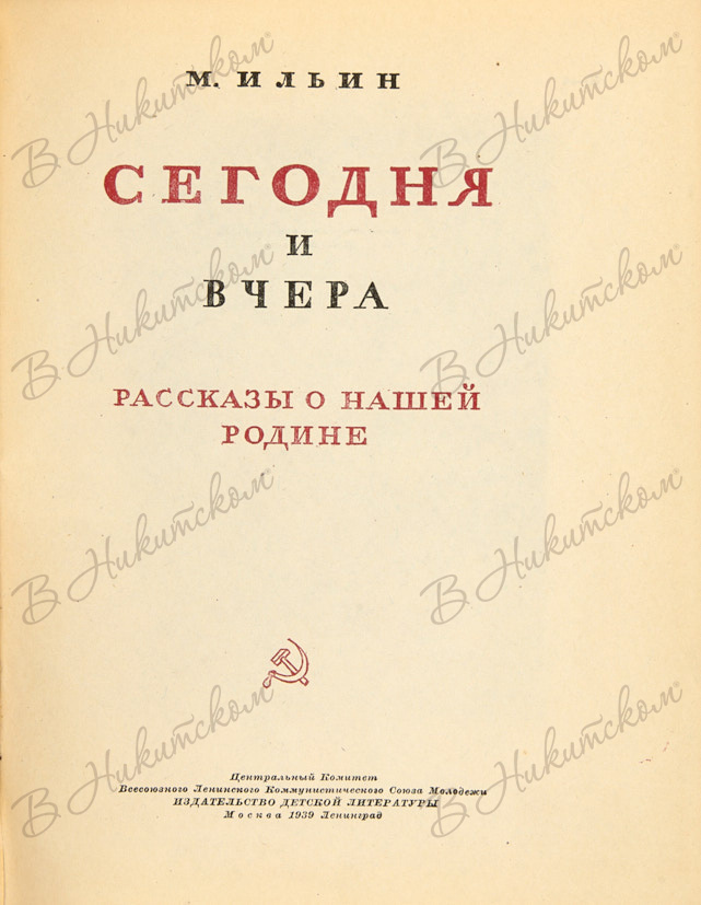 Ильин, М. Сегодня и вчера. Рассказы о нашей Родине. М.; Л.: ДЕТИЗДАТ, 1939.