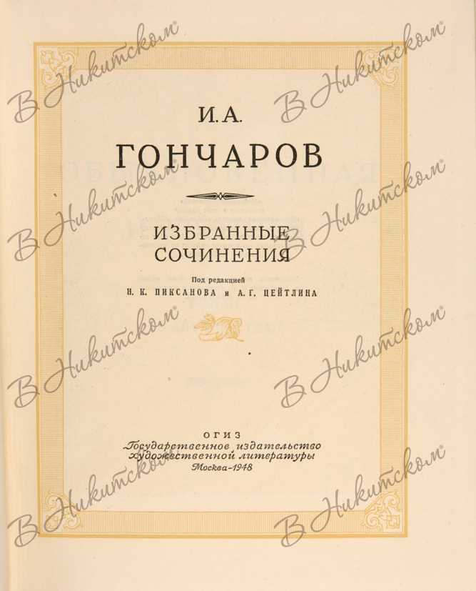 Гончаров, И.А. Избранные сочинения / под ред. Н.К. Пиксанова и А.Г. Цейтлина. М.: ОГИЗ, ГИХЛ, 1948.