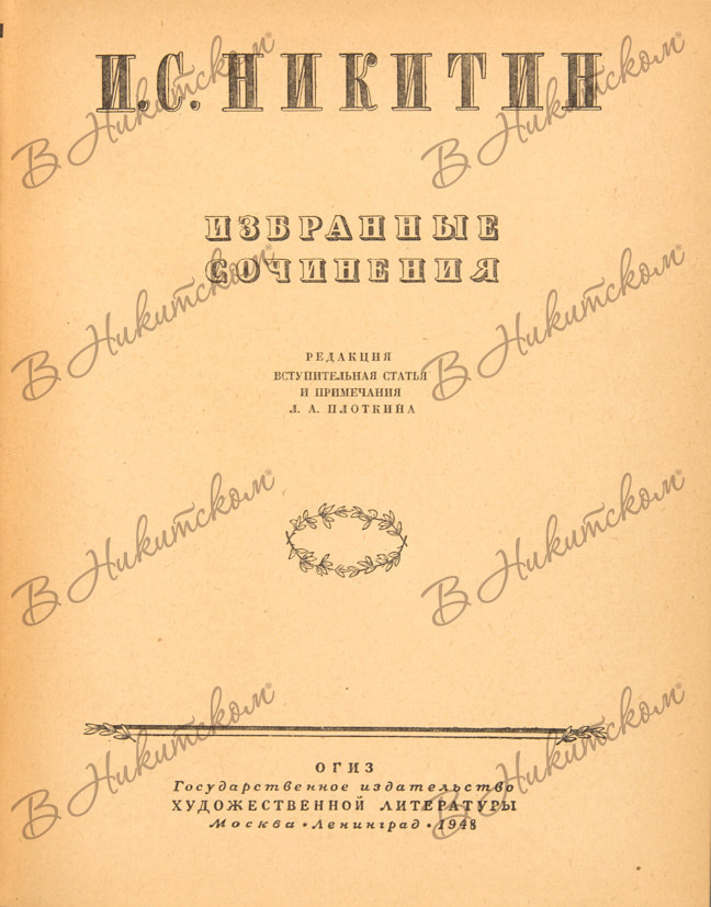Никитин, И.С. Избранные сочинения. М.: Художественная литература, 1948.