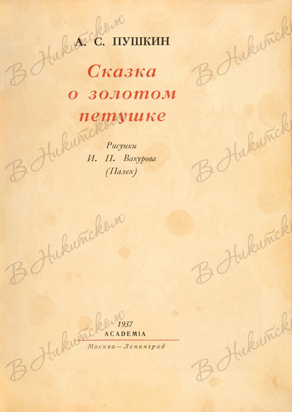 Пушкин, А.С. Сказка о золотом петушке / рис. И.П. Вакурова (Палех). М.; Л.: Academia, 1937.