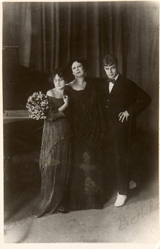 Фотография. Сергей Есенин, Айседора Дункан и ее приемная дочь Ирма Дункан в Клубе писателей в мае 1922 года. [Поздний отпечаток, 1950-1960-е гг.].