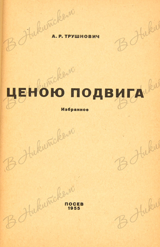 Трушнович, А.Р. Ценою подвига. Избранное. [Франкфурт-на-Майне]: «Посев», 1955.