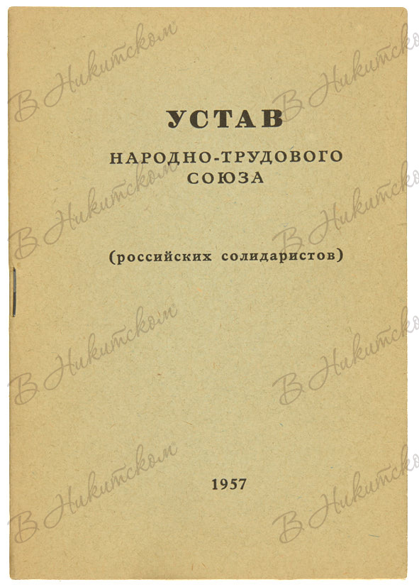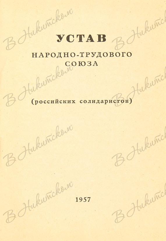 [Было запрещено к ввозу в СССР]. Устав Народно-Трудового Союза (российских солидаристов). Франкфурт-на-Майне: «Посев», 1957.