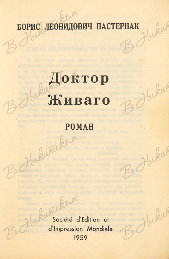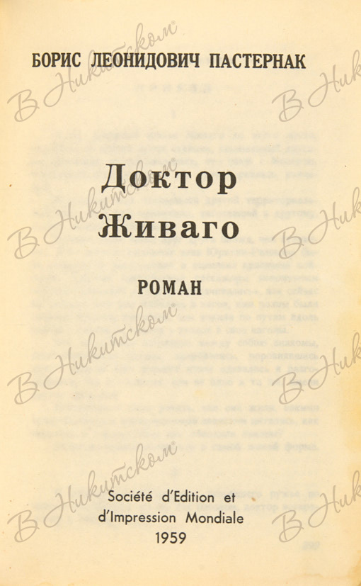 Пастернак, Б.Л. Доктор Живаго. Роман. [В 2 т.]. Т. 1-2. Париж: Société d’Edition et d’Impression Mondiale (SEIM), 1959.