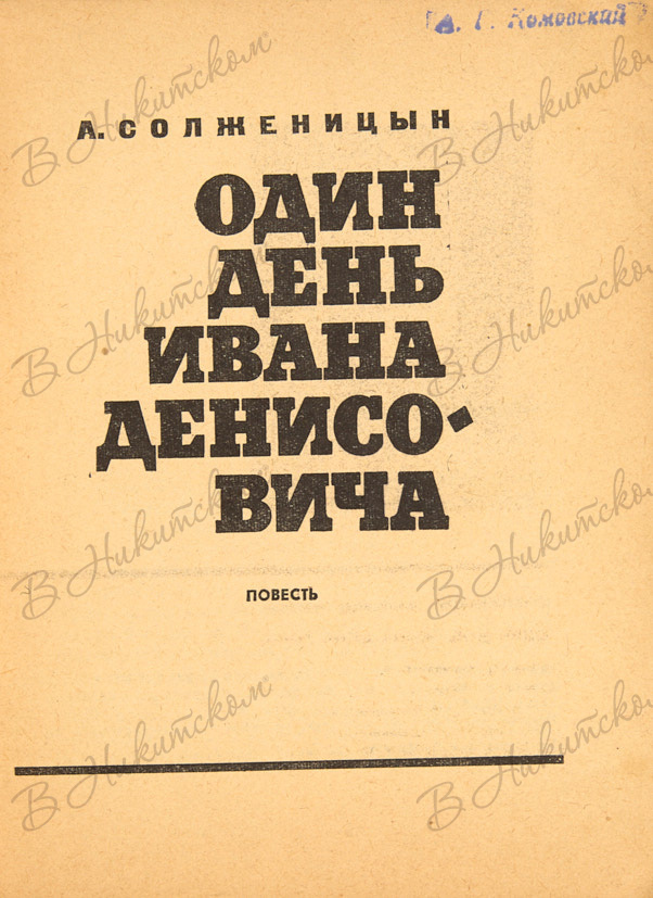 [Первая книга, изданная в СССР]. Солженицын, А. Один день Ивана Денисовича. Повесть. М.: Советский писатель, 1963.