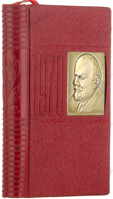 16,3 х 11,7 см. В издательском ледериновом переплете с накладкой-портретом В.И. Ленина на передней крышке, ляссе. Книжка не заполнена, в отличном состоянии.
