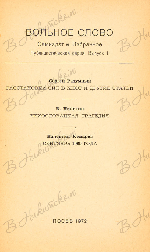 Вольное слово. Вып. 1. Франкфурт-на-Майне: «Посев», 1972.