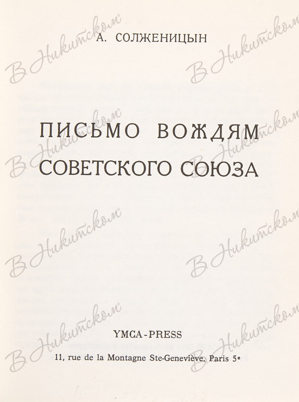 Солженицын, А. Письмо вождям Советского Союза. Париж: YMCA-PRESS, 1974.