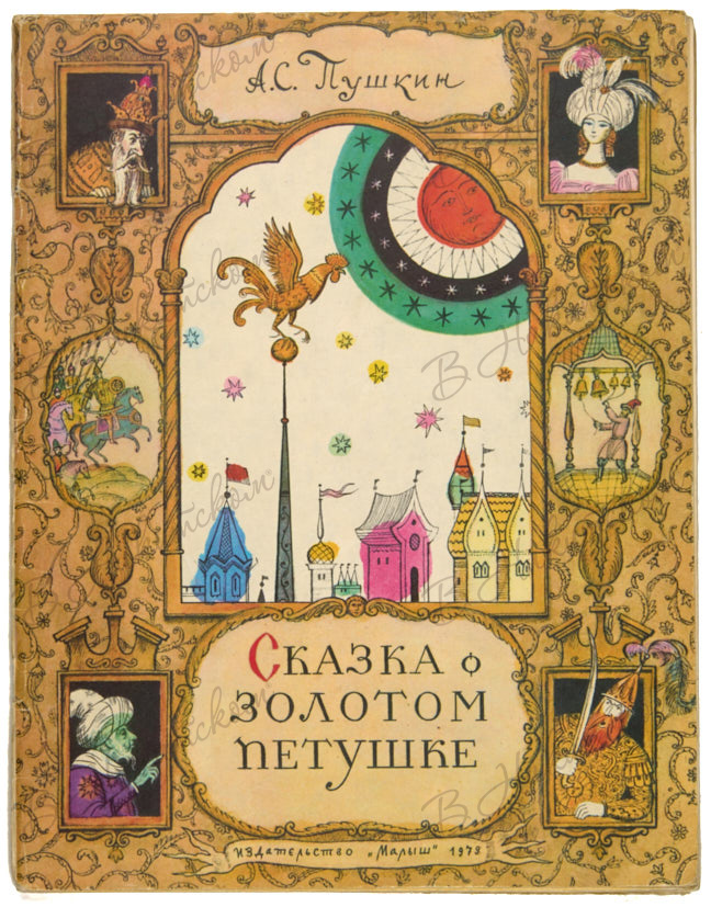 1. Пушкин, А.С. Сказка о Золотом Петушке / рис. В. Конашевича. М.: «Детская литература», 1978. 3, [17] с., ил. 27,5 х 21,2 см. В иллюстрированной издательской обложке. В очень хорошем состоянии.