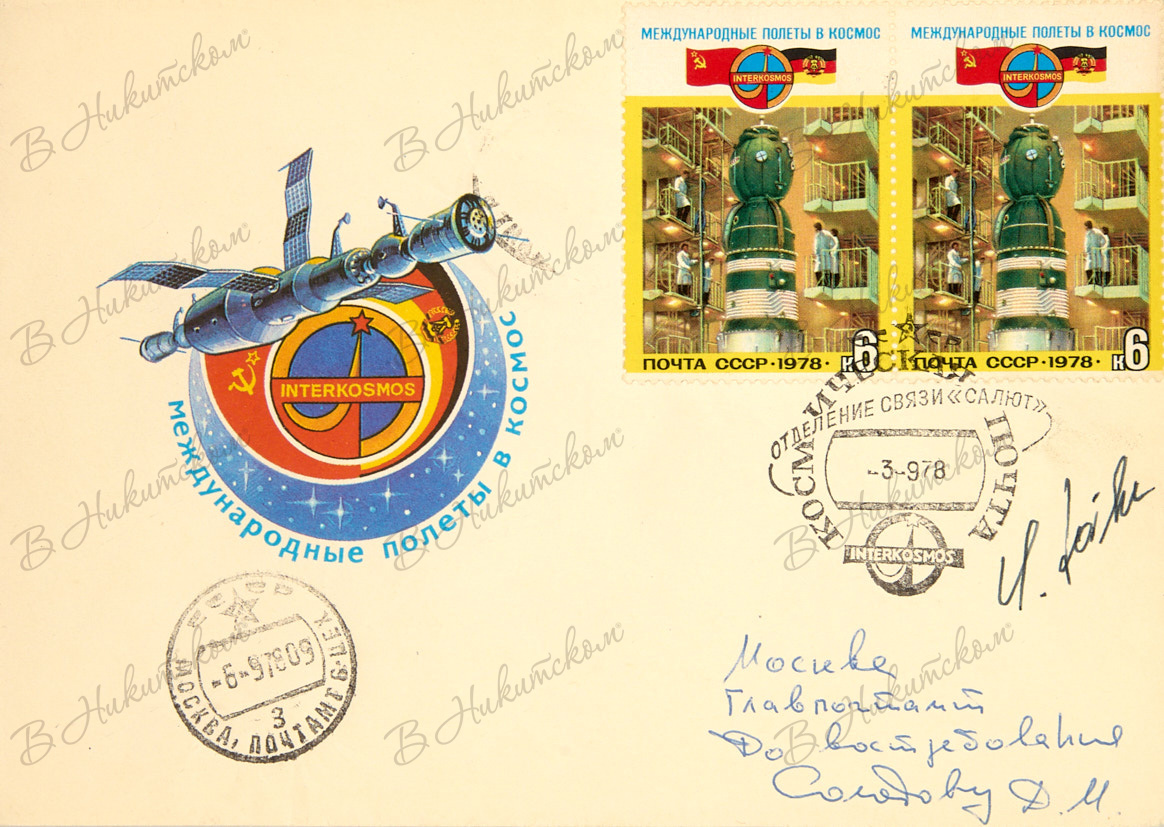 Йен, З. [Автограф Д.М. Солодову]. Конверт «Международные полеты в космос» с почтовой маркой и спецгашением. 1978.