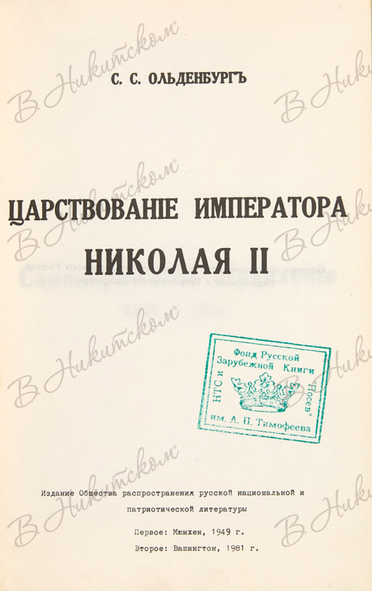 Ольденбург, С.С. Царствование императора Николая II. 2-е изд. Вашингтон: Издание Общества распространения русской национальной и патриотической литературы, 1981.