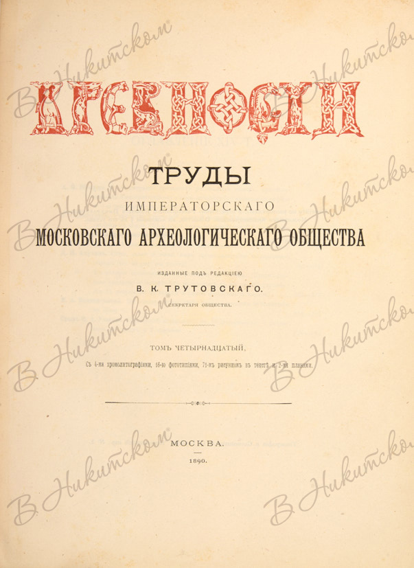 Древности. Труды Императорского Московского археологического общества / под ред. В.К. Трутовского. [В 25 т.]. Т. 14. М.: Тип. и словолитня О.О. Гербека, 1890.