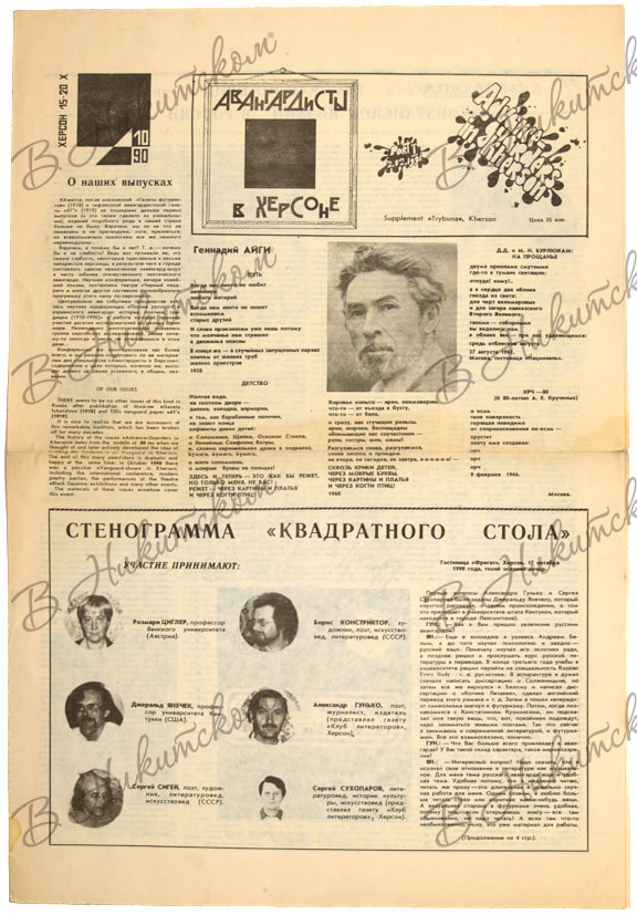Херсон тесно связан с историей литературного и художественного авангарда (в первую очередь, с именами Крученых, Бурлюков, Хлебникова, Гнедова, Харджиева). Сергей Сухопаров, автор первой на русском языке монографии, посвященной творчеству Алексея Крученых, в октябре 1990 года пригласил в Херсон авангардистов и ученых-славистов - Сергея Сигея, Бориса Констриктора, Евгения Даенина, Егора Радова, Розмари Циглер (Австрия) и Джеральда Янечека (США). Результатом стали два выпуска газеты «Авангардисты в Херсоне» (приложения к газете "Народна трибуна"). Выпуски позиционировались как издание, продолжающее традиции русского авангарда.