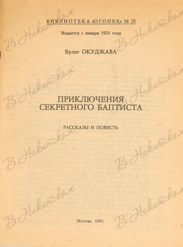 11. Окуджава, Б. Приключения секретного баптиста. № 25. М.: Огонек, 1991. 48 с.