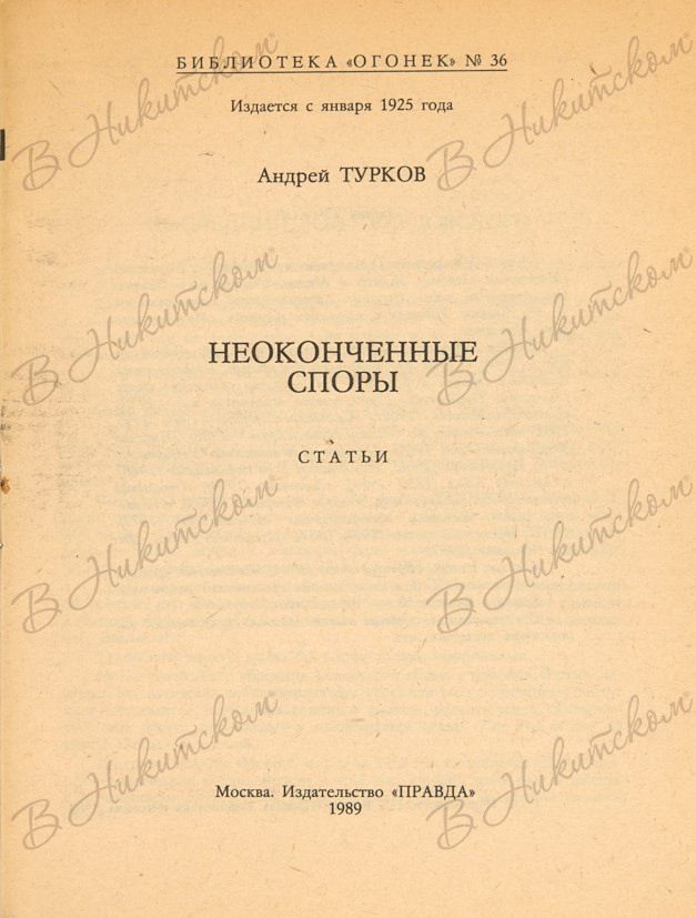 3. Турков, А. Неоконченные споры. № 36. М.: Изд-во «Правда», 1989. 48 с.