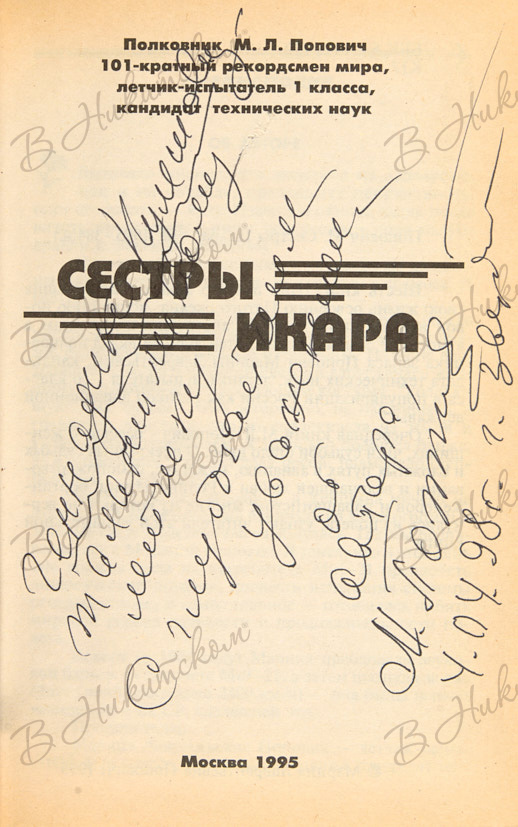 Попович, М. [Автограф]. Сестры Икара. М.. 1995.