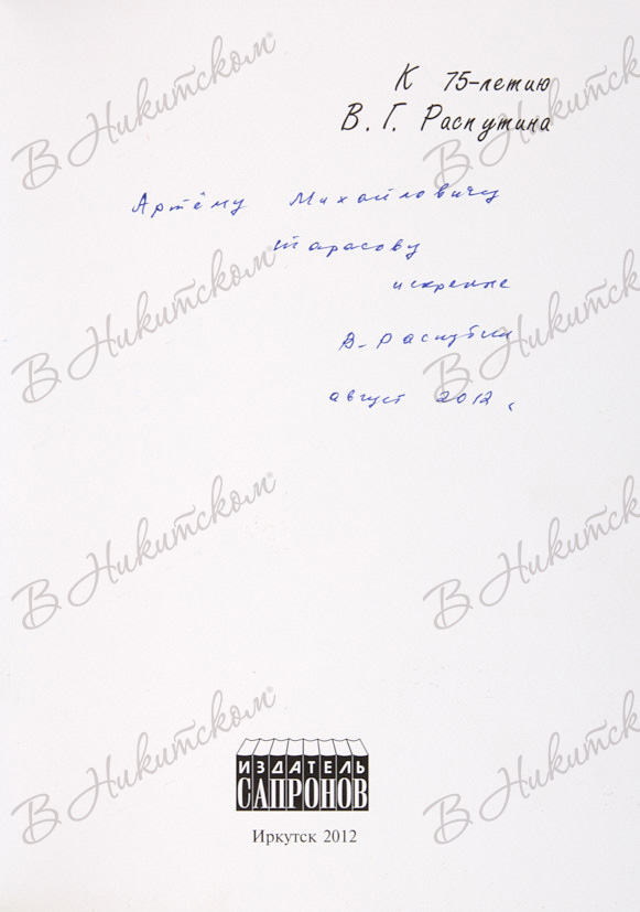 Распутин, В.Г. [Автограф]. Прощание с Матерой. Иркутск: Издатель Сапронов, 2012.