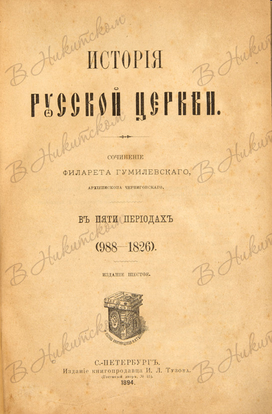 Гумилевский, Ф. История русской церкви. В пяти периодах (988-1826). 6-е изд. СПб.: И.Л. Тузов, 1894.