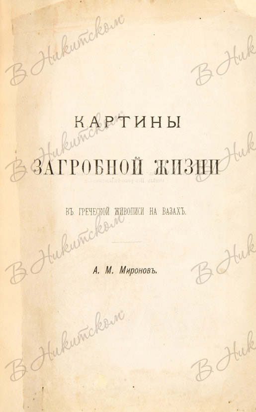 Миронов, А.М. Картины загробной жизни в греческой живописи на вазах. М.: Унив. тип., 1895.