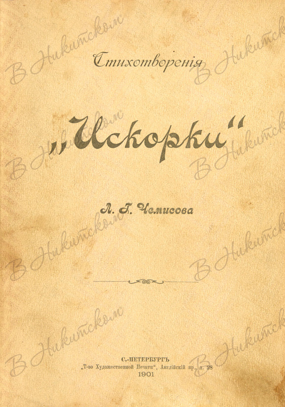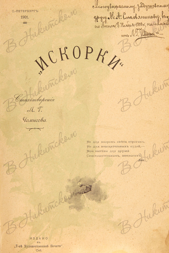Чемисов, Л.Г. [Автограф]. Искорки. Стихотворения Л.Г. Чемисова. СПб.: Т-во художественной печати, 1901.