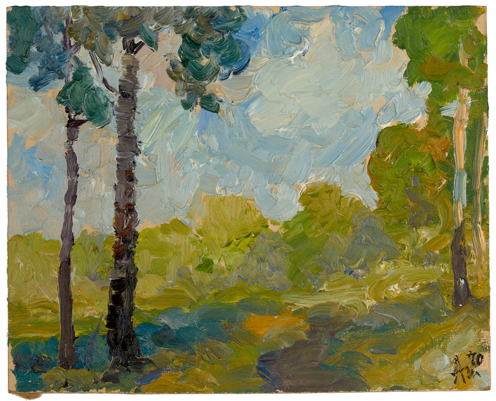 Кузьминки. Первая зелень. 1970 г. Картон, масло, 20×25 см.