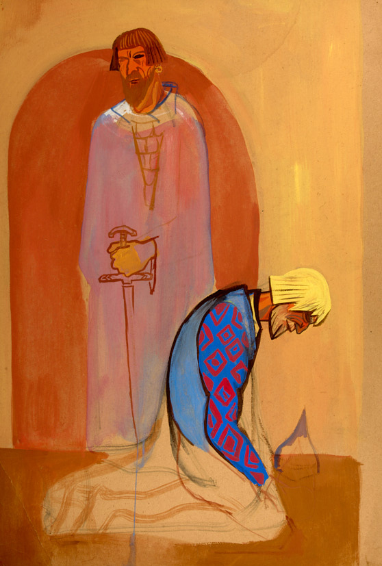 Два персонажа. Эскиз костюмов к предполагаемой постановке Алика Гинзбурга по мотивам поэмы «Слово о полку Игореве». 1964 г. Картон, темпера, 74×50 см.
