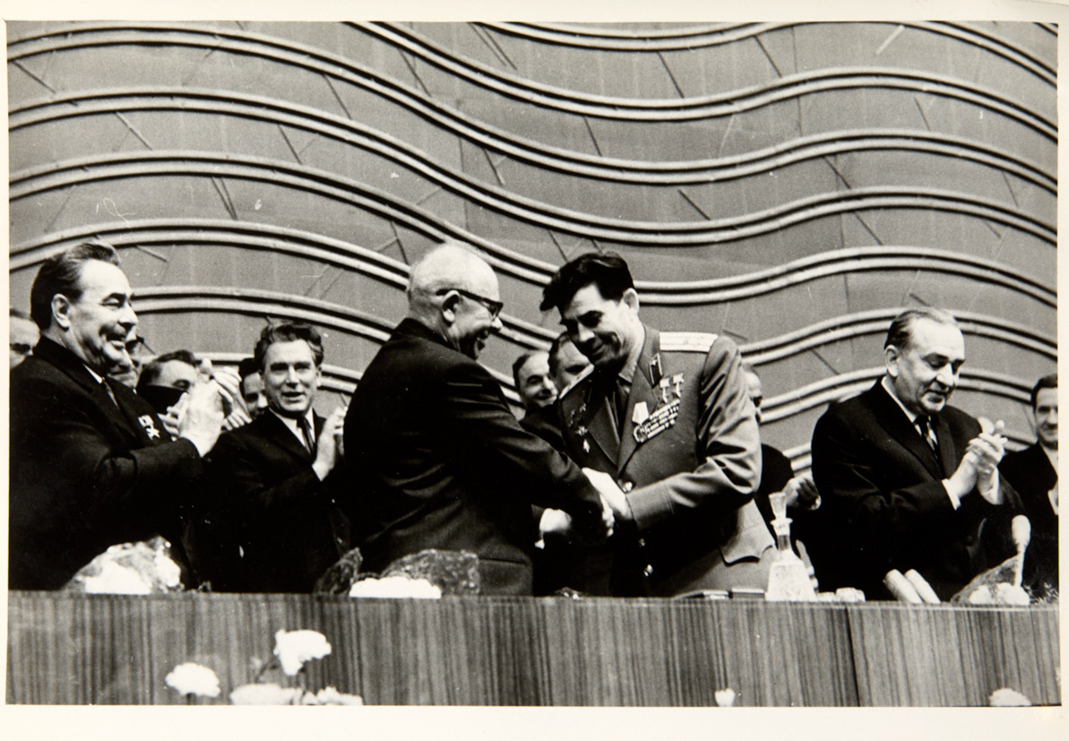 Кремлевский дворец съездов. Н. В. Подгорный вручает орден Ленина космонавту Г. Береговому. Начало 1970-х гг. Фотография, 18×24 см.