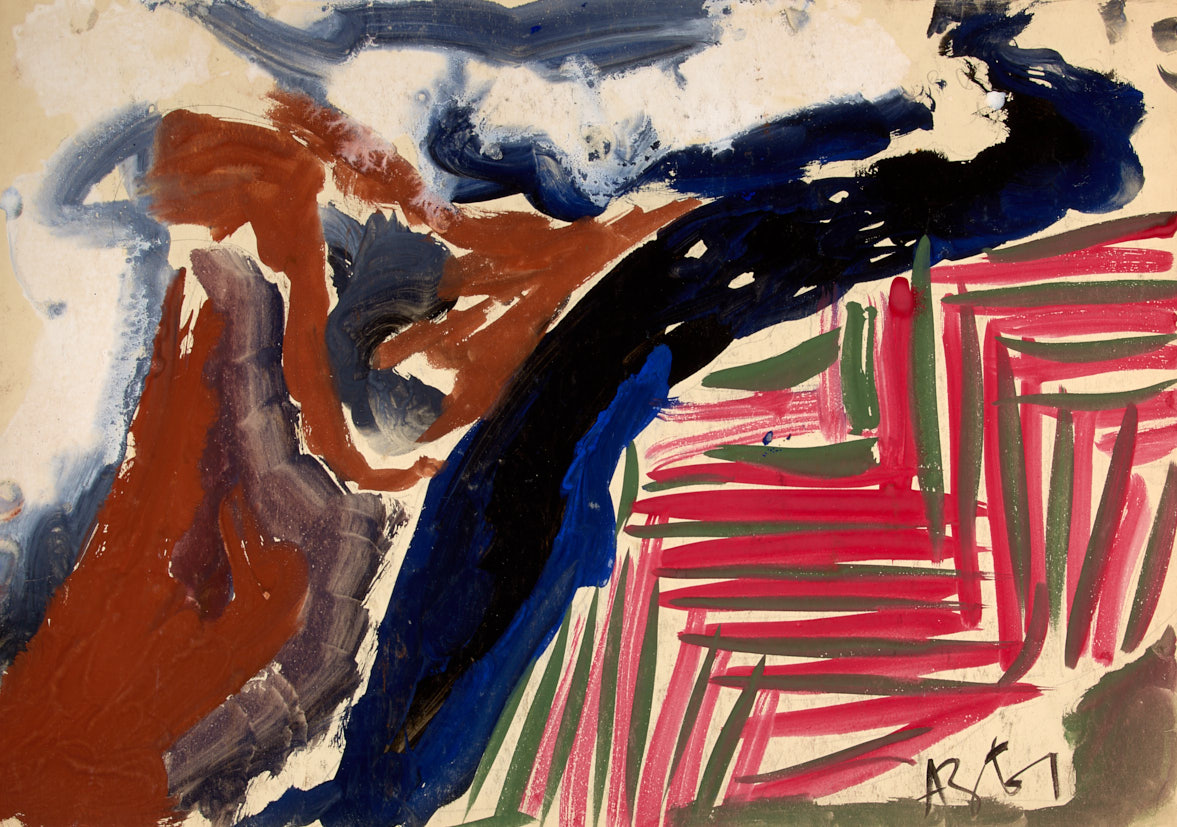 Композиция. Пейзаж с рекой. 1961 г. Бумага, карандаш, гуашь, соль, 41,5×60 см.