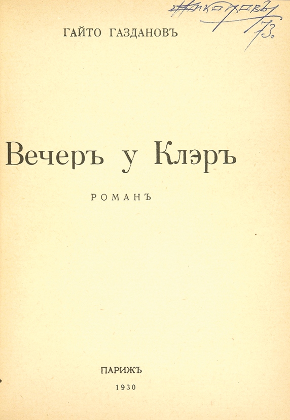 Газданов, Г. Вечер у Клэр. Роман. Париж, 1930.