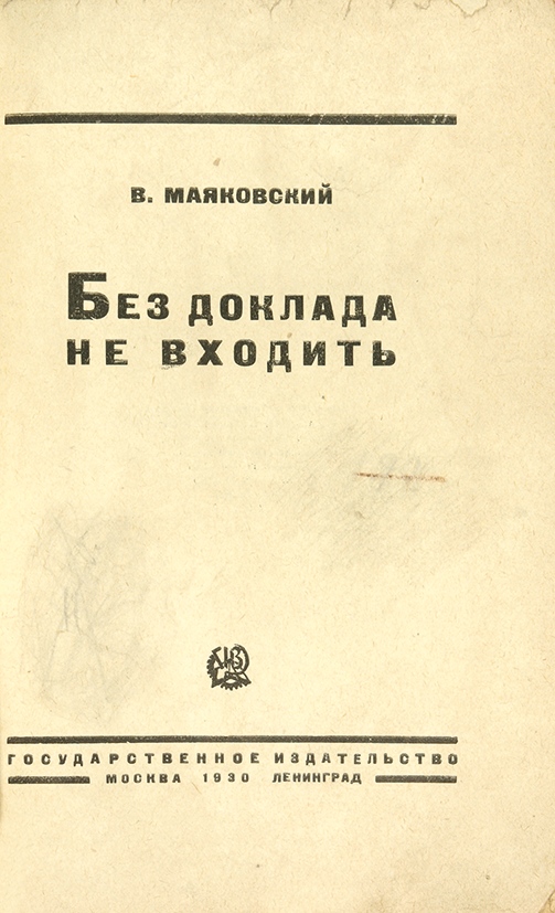 Маяковский, В. Без доклада не входить / обл. С. Сенькина. М.; Л.: Госиздат, 1930.
